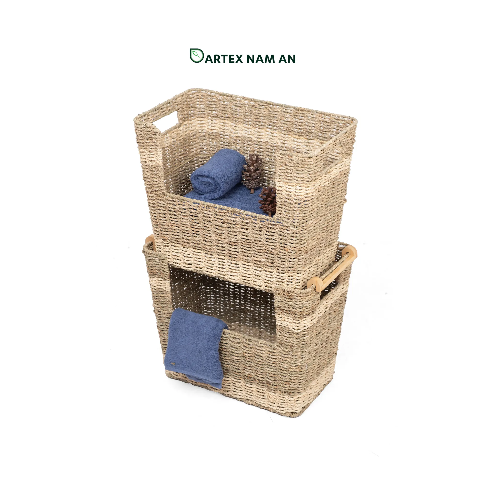 Wholesale Laundry Basket made from Seagrass and Palm Leaf with Bamboo Support for Home, Office, HORECA and Retail Organization