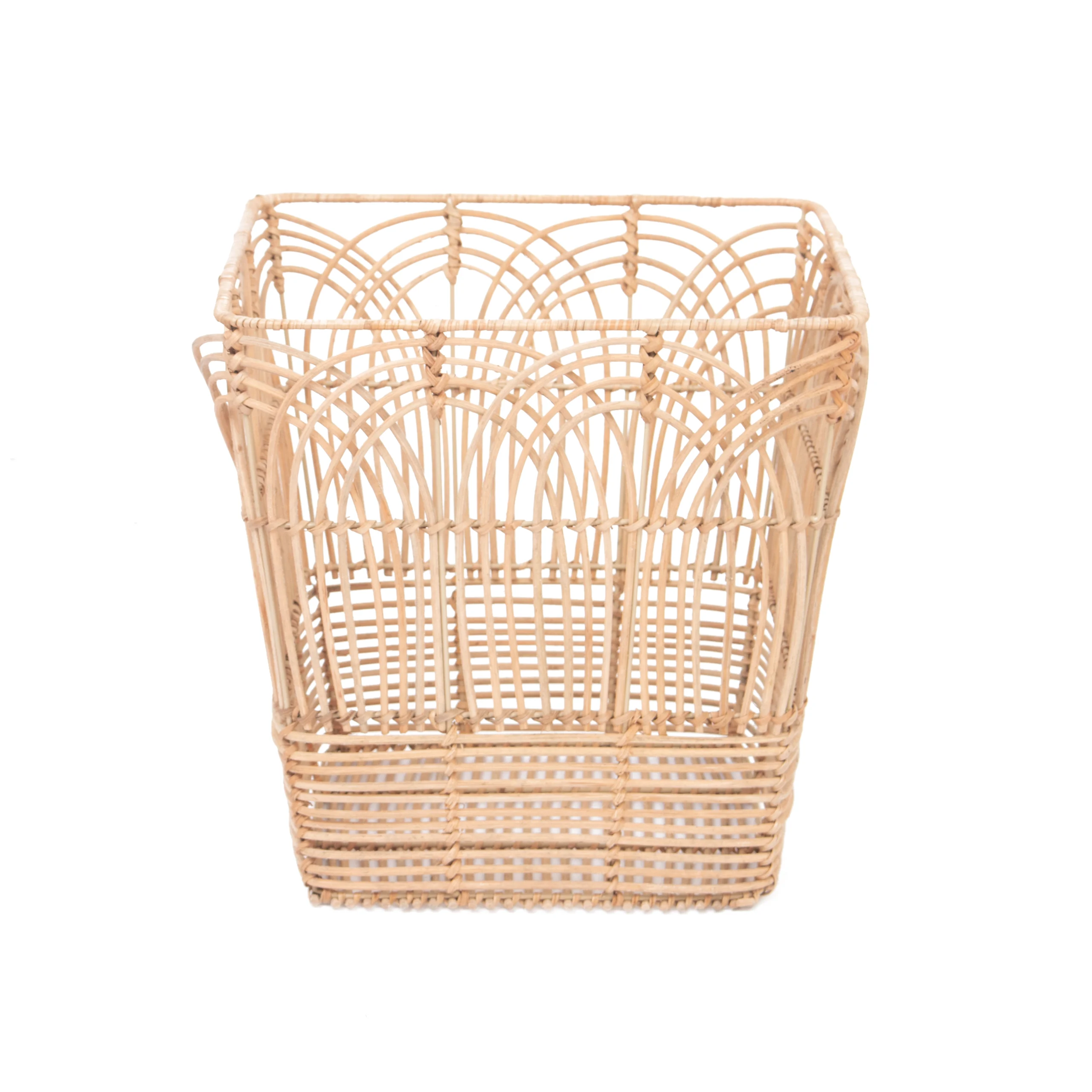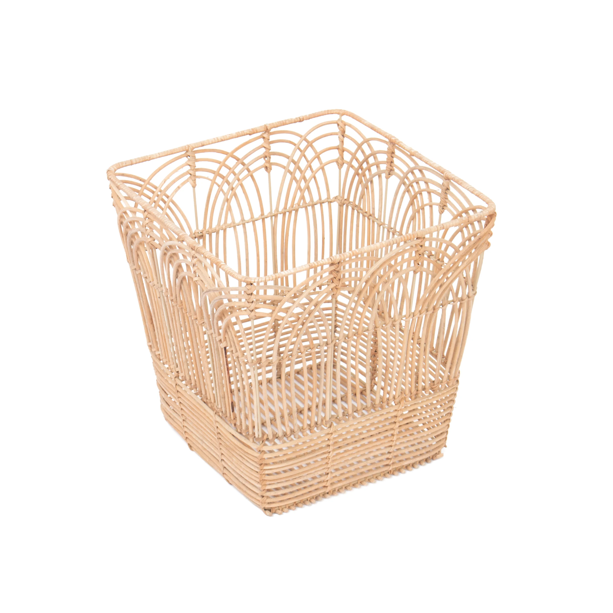 The decorative weave and neutral rattan color fit nicely with minimalism, contemporary, and Scandinavian décor. It can be used in living rooms for blankets and magazines, in bedrooms for accessories, in offices for files or supplies, or in reception and lobby areas as a neat storage and display piece. The structured sides and solid base help the basket keep its shape, even when full, while the open top allows easy access to stored items.