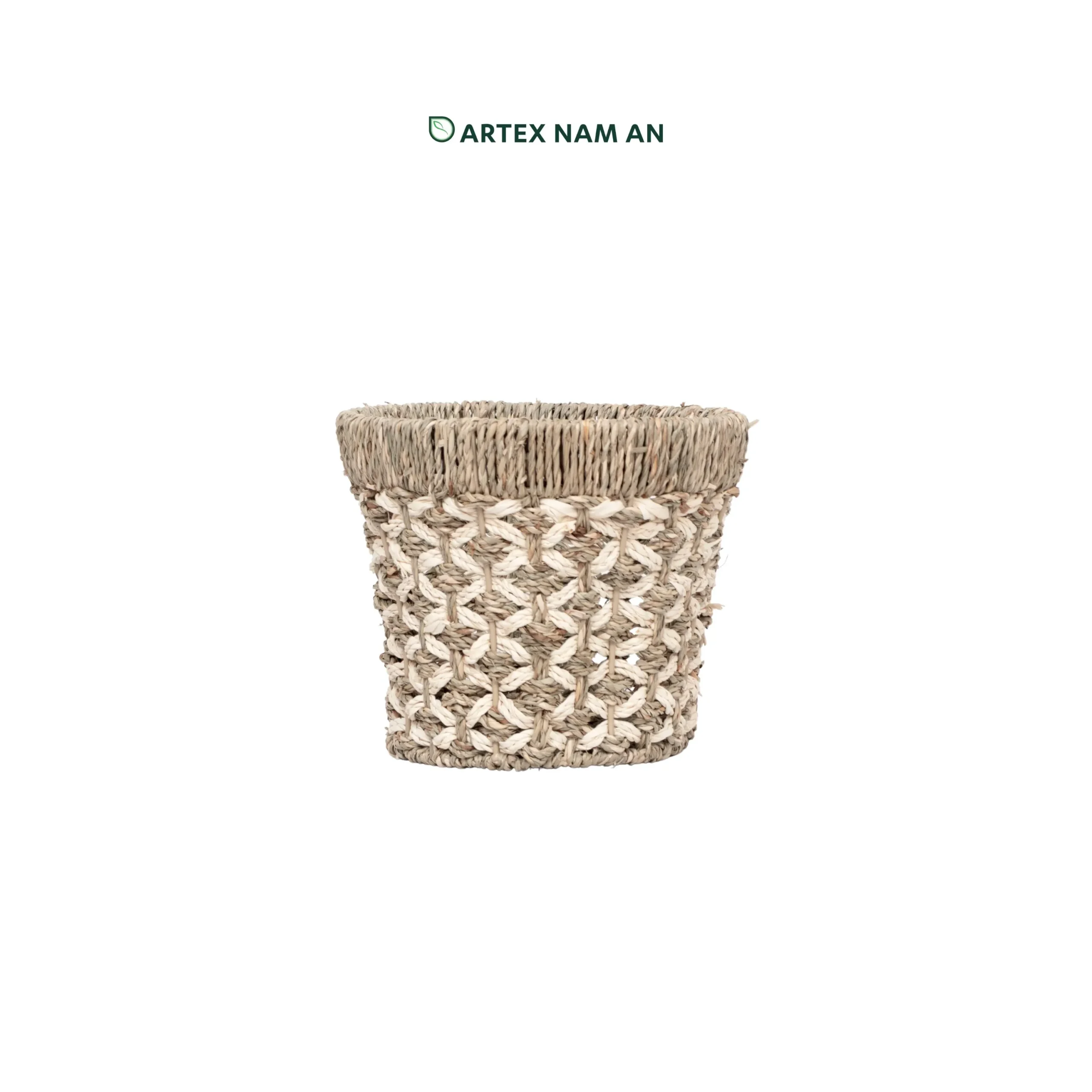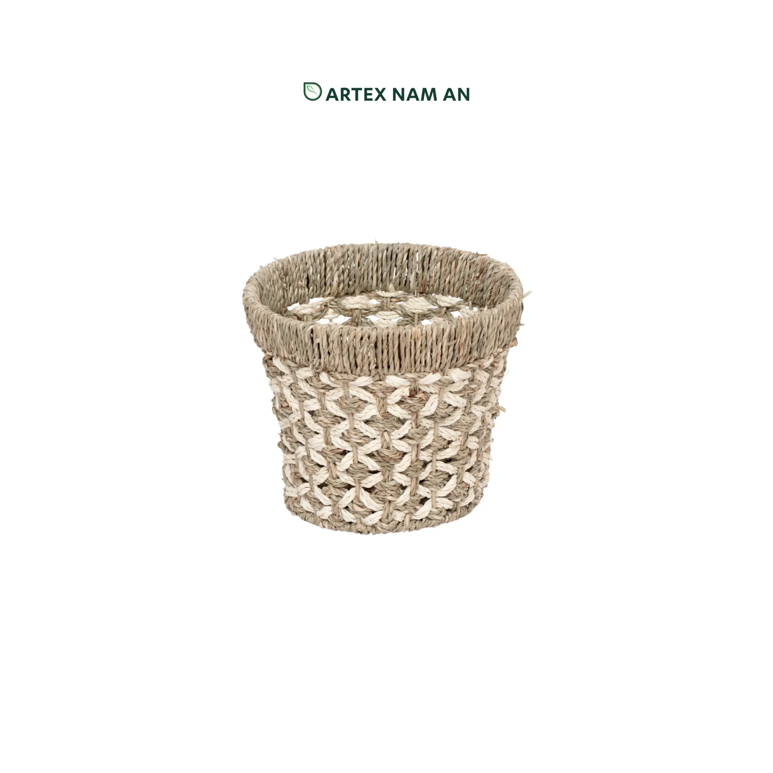 The Whole Sale Set of 2 Seagrass with Palm leaf Planter Flower pot with beautiful details for home decoration, indoor garden and wedding décor brings soft texture and a natural feel to plant styling. Each planter is handwoven from a blend of seagrass and palm leaf, giving a warm, layered look that pairs well with green foliage and floral arrangements.