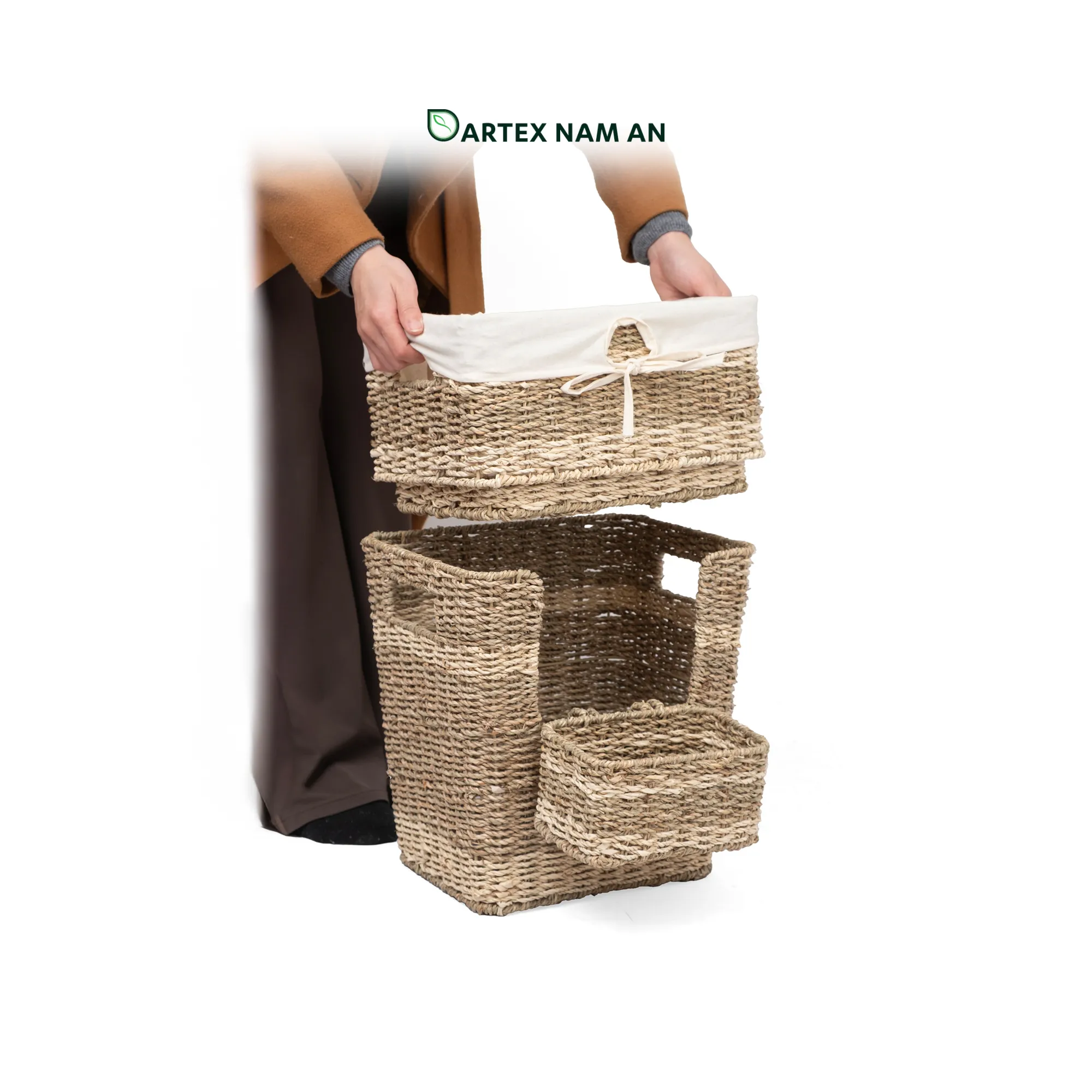 The Wholesale Storage Basket stacked set made from seagrass and palm leaf is a practical and decorative way to keep spaces organized. Each basket features warm natural fibers and a clean shape that works well in living rooms, bedrooms, offices, kitchens and bathrooms, as well as hotels, cafés and retail stores. The stacking set gives multiple sizes for sorting textiles, documents, toys, toiletries and general household or work items. With a relaxed, natural look that fits contemporary, midcentury, modern, coastal and boho chic interiors, this set is a solid choice for retailers, wholesalers, sourcing companies, HORECA and décor buyers who want functional storage that also looks good on display.