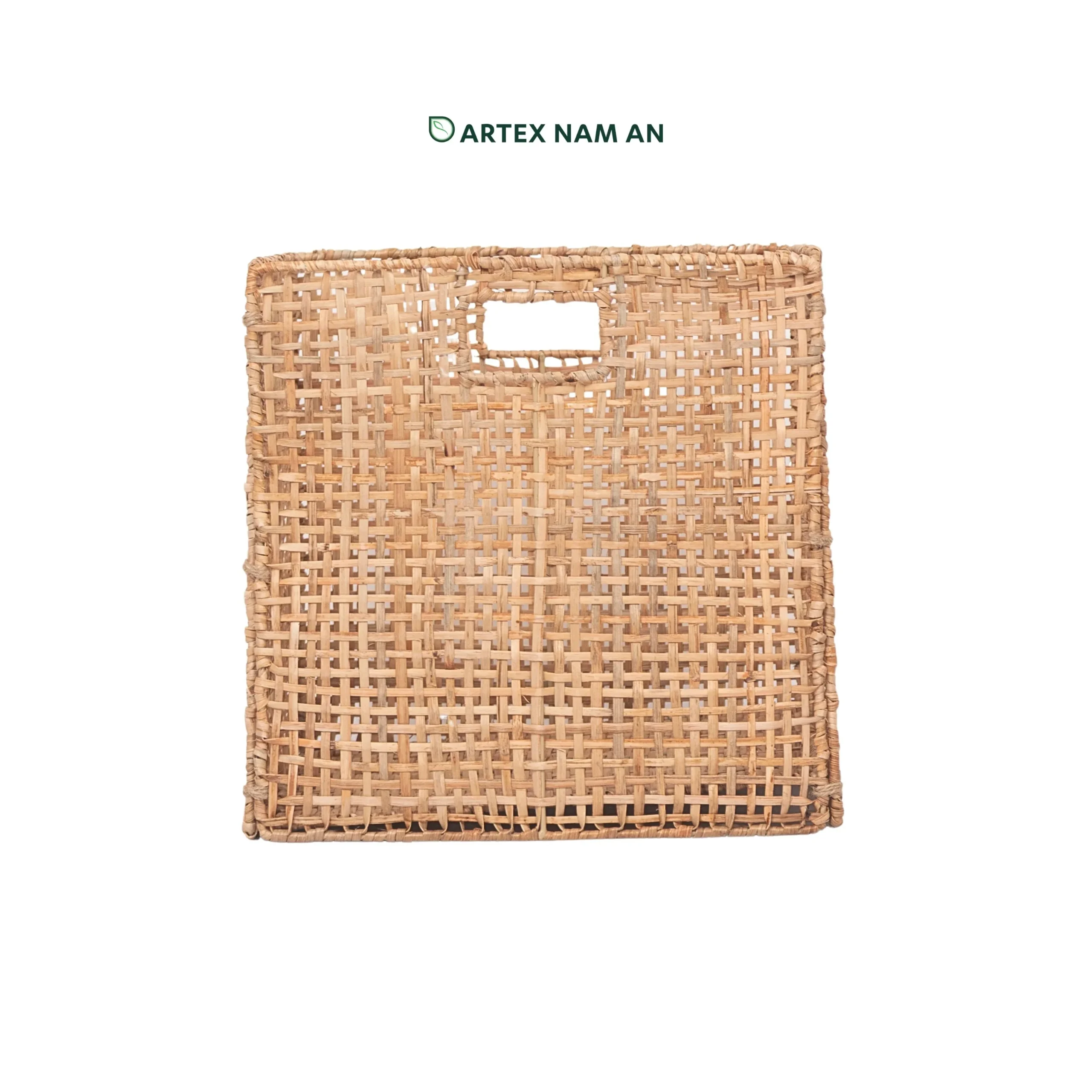 Wholesale Storage Basket made from natural rattan peel, foldable and sized for Ikea Kallax shelves, ideal for home, office, HORECA and retail organization. Practical, durable and suitable for contemporary, minimalist and Scandinavian interiors.
